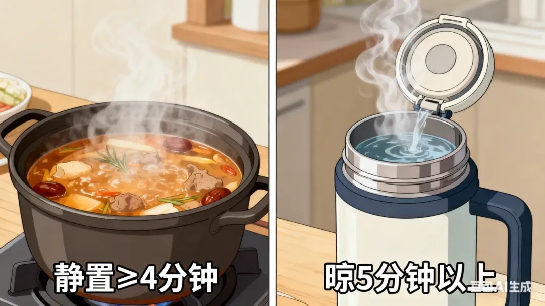 刚煮好的热汤、热粥,温度通常为70~85℃,可能会持续保持较高温度。