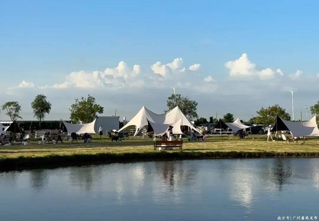 游客漫步于此,既可享受采摘新鲜水果的乐趣,又能体验垂钓江边的悠然,可以沿着环岛绿道骑行,也可以搭上帐篷美美睡上一觉。