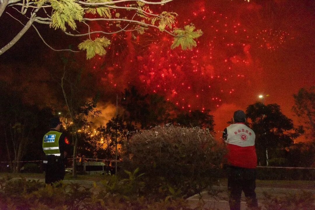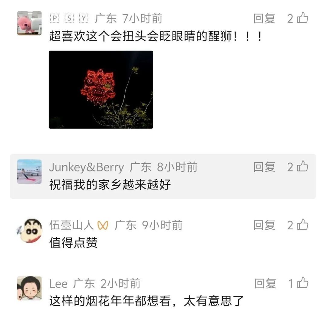 游客陆女士从北京过来台山旅游,体验到了浓浓的年味,“感觉挺震撼的,先是无人机,再是烟花,星光璀璨。”